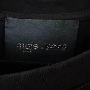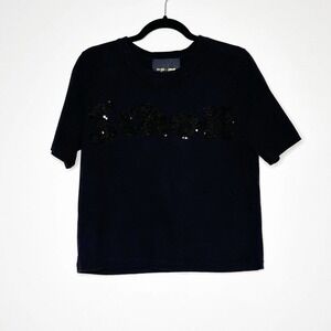 Maje X Schott Embroidered Sequined Crew Neck T-Shirt Womens Black Size 2 M