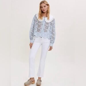 Shirt two-tone broderie Anglaise Cotton ruffled Trims scalloped