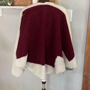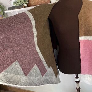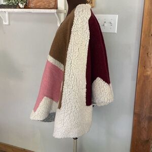 Maje made in italy wool blend colorblock shawl cape poncho pink cream burgundy o