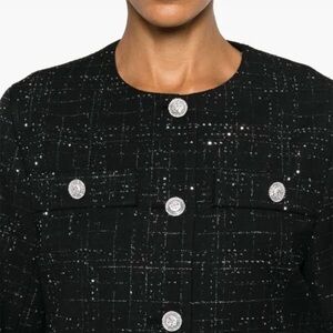 Chic black jacket with sparkling silver details. Ideal for a stylish ensemble. No tags by 2