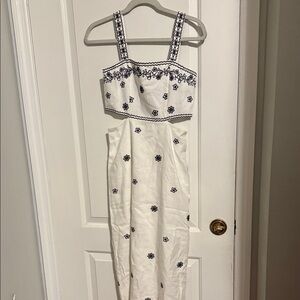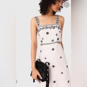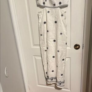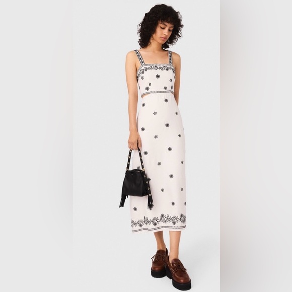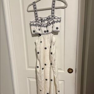 Stylish white maxi dress with black floral embroidery. Ideal for elegant events.byb 3