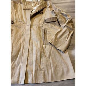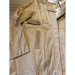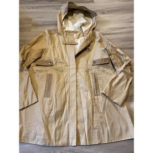 Maje, women’s tan all weather hooded rain jacket with pockets size 40 (large)