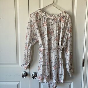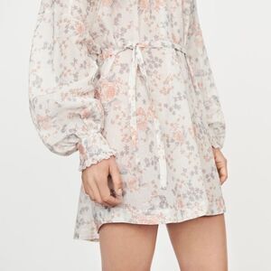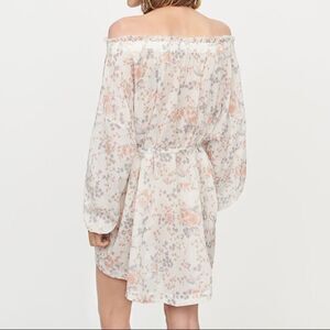 Short cotton voile dress All over floral print Bare shoulder and long puffy sleeves