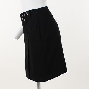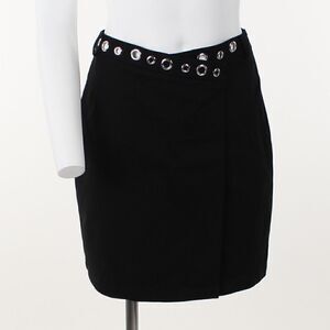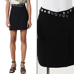 Update for your lineup of streetwise staples with this wrap-front cotton miniskirt cut with an asymmetrical high waist traced with gleaming grommets. Maje size is 38 which translates to M or 4/6 US.