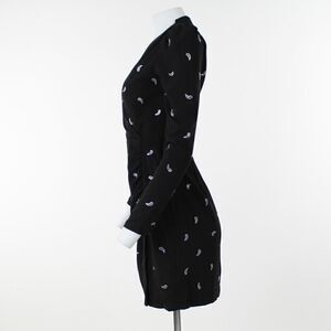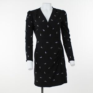 Elevated elegance defines this flattering faux-wrap frock, dazzled with paisley rendered in rhinestones. Maje size is 38 which translates to M or 4/6 US