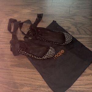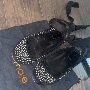 Maje lace up studded flat ballerinas suede 100 leather