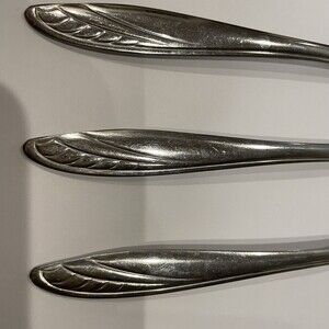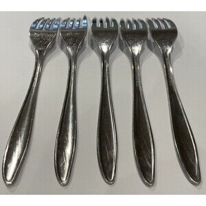 5 Vintage Mid Century Majesco Stainless Steel Salad Forks MJS3 Flatware USA 6 7/8" USA. Preowned Please see photos for vintage flatware wear.