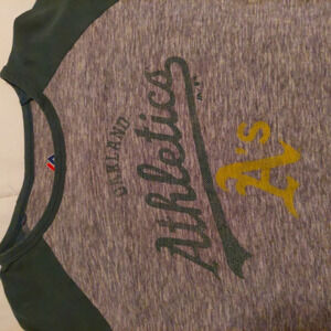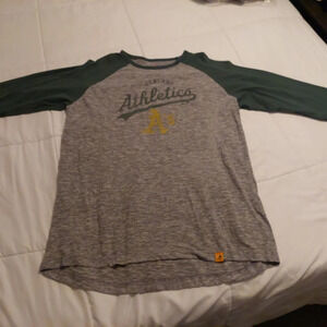 Majestic 90s y2k Oakland A's Baseball 3/4 sleeve tee Gray Green Large