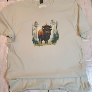 A captivating, detailed graphic of an American Bison stands proud, bringing the spirit of the wilderness to your wardrobe.