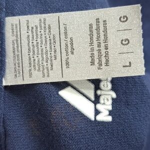 Majestic Authentic Atlanta Braves blue LG casual pullover t-shirt is good shape w normal wear. Minimal wash wear and fade.