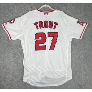 Majestic Authentic Jersey Mike Trout #27 Los Angeles Angels Mens XL 48 White