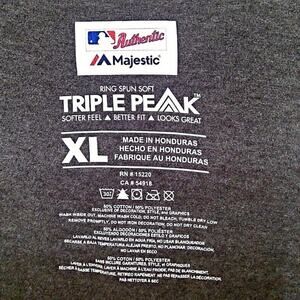 This is a Gray Majestic Triple Peak Baltimore Orioles T Shirt, size Extra Large. The Triple Peak designation is a cotton/poly blend and is promoted as being "ring-spun soft." It is a part of the MLB Authentic Collection and carries a manufacturing date of 2014. No damages or defects. Sold as-is, shipped double-bagged.
