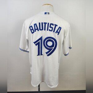 Baseball jersey, major league baseball, blue system, Bautista jersey, game days, game days jersey, white jersey, outdoor, baseball game, blokecore