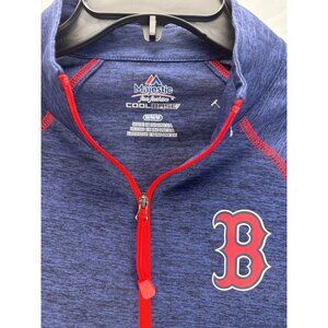Stylish Majestic men's jersey. Blue with red accents. Features team logo on chest. Comfortable and sporty.