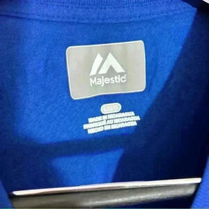 Keywords: Majestic, Chicago Cubs, MLB, T-shirt, Graphic Tee, Crew Neck, Short Sleeve, Baseball, Fan Apparel, Team Shirt, Sports, Casual Wear, Blue T-shirt