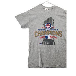 Majestic Chicago Cubs Men’s Shirt World Series Champions 2016 NWT Gray Small