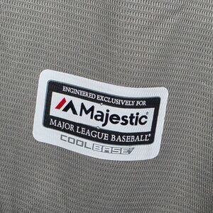 Authentic Majestic Cool Base Chicago White Sox road gray jersey featuring “Chicago” script front and “JORDAN 45” on back. Genuine MLB merchandise, made in Honduras. Lightweight performance polyester with red and black stitched lettering. A must-have collectible for fans of Michael Jordan’s baseball era or White Sox memorabilia.