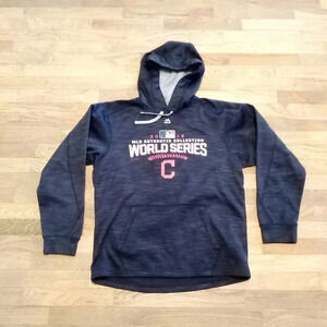 Majestic Cleveland Indians 2016 World Series Navy Blue Hoodie Pullover Medium