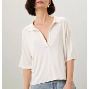 Majestic Filatures Cream Oversized Polo Top LARGE Knit Basic Soft Designer $195