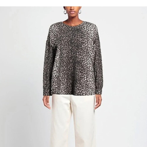 jersey, no appliqués, leopard-print, round collar, long sleeves, no pockets, stretch