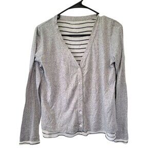 Majestic Filatures Paris Gray Cotton Silk Contrast Cardigan Size 2 -Small