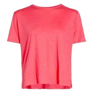 Majestic Filatures Women's Linen/Elastane Short Sleeve Crewneck Pink Tee
