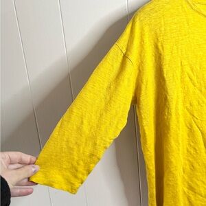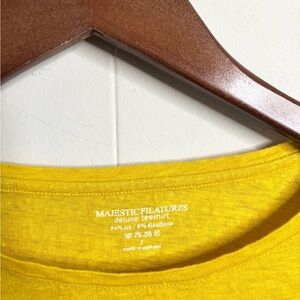 Majestic Filatures linen blend yellow 3/4 sleeve scoop neck top size (2)
