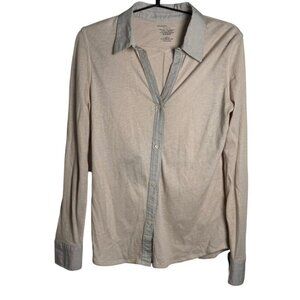 Majestic Filatures womens Deluxe button down knit Cotton Cashmere shirt size 1 S