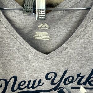 Classic gray tee with New York Yankees script. Majestic branding on chest.