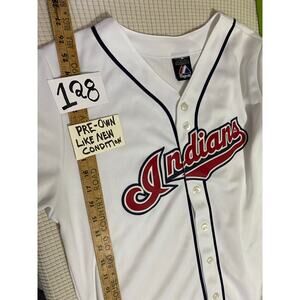 Majestic Indians Baseball Jersey White Button-Up Medium Red Navy Logo
