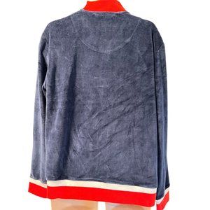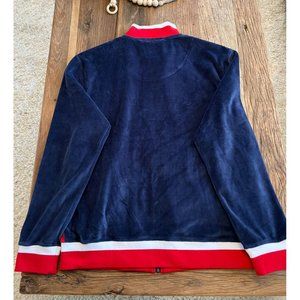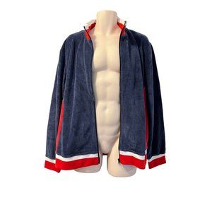 Majestic International Velour Track Suit Jacket Top Navy Red White Zipper NWT.