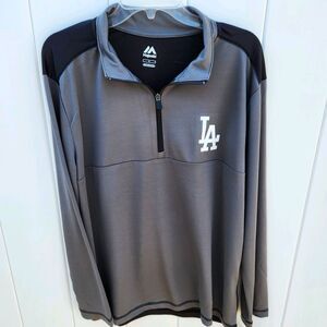 Majestic Los Angeles Dodgers 1/4 Zip Pullover Coolbasr Shirt MLB Gray Sz…