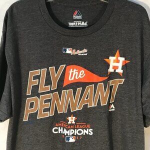 Majestic MLB Houston Astros Baseball Pennant Gray Short Sleeve Tee T Shirt