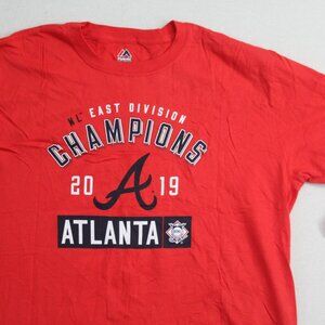 Majestic Men Red Tee Shirt Atlanta Braves NL East Champions 2019 Size XL