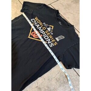Show your support for the Washington Nationals with this Majestic t-shirt featuring the 2019 World Series champions. This black shirt is made of high-quality material and is officially licensed by the Major League Baseball. It's a perfect way to celebrate your team's victory and show your pride as a fan. The shirt is designed for men and is available in size large. It has a capacity of 8 oz and is made in Nicaragua. Get your hands on this unique piece of memorabilia and add it to your collection today!