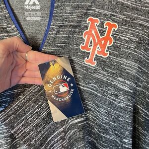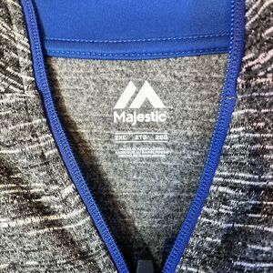 Embrace your team spirit with the Majestic New York Mets 1/4 Zip Lightweight Pullover. This premium men's size 2XL gray pullover is designed for the ultimate baseball fan, featuring a sleek design that combines comfort with your favorite team's pride. The pullover is officially licensed by the MLB, ensuring you're getting authentic team merchandise. Crafted for a comfortable fit, the pullover is manufactured in Bangladesh and is perfect for any casual occasion or day at the game. The absence of a player's name on the pullover makes it versatile for any fan, while the New York Mets branding ensures your loyalty is on full display. Whether you're at the stadium or out on the town, show your support in style. 100% Polyester Length- 31 1/2 Chest (arm pit to arm pit)- 28 Sleeve- 27