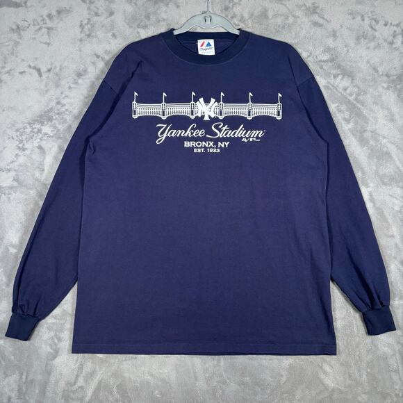 Majestic New York Yankees Yankee Stadium Navy Long Sleeve Shirt Small