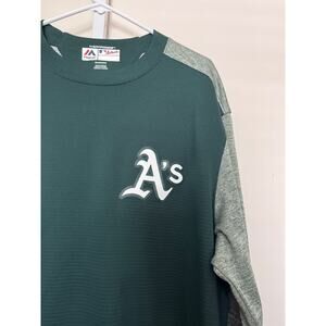 Majestic Oakland A's Authentic Collection Pullover Sweater 2XL XXL Raglan EUC
