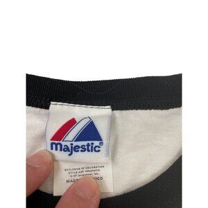 This Majestic Phillies Champions T-shirt showcases team loyalty with a bold graphic design. Made of 100% cotton for breathable comfort and durability. Total length 31", shoulder to shoulder 18", Pit to pit 20.5", waist 20.5", Hem 20.5", sleeve length 9". I ship really fast. No defects noted. SKU 8521