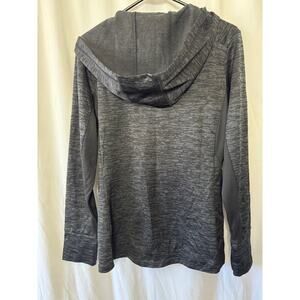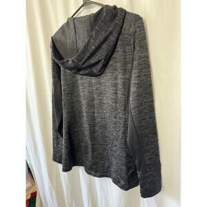 This Majestic San Francisco Giants women's hoodie is a sporty and stylish piece, perfect for fans of the team or casual wear. Made from a lightweight and breathable blend of 92% polyester and 8% spandex, it features a subtle gray camo print with the "Giants MLB Authentic Collection" logo prominently displayed on the front. The hoodie includes a kangaroo pocket, thumb slits for added comfort, and a relaxed fit for everyday wear. Measuring 4" at the shoulders, 25" sleeves, 42" chest, and 24" in length, this hoodie is ideal for layering during cooler weather. In excellent condition with no visible signs of wear, it’s ready to show off your team spirit in style.