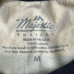 Show your support for the Tennessee Titans with this Majestic Threads raglan tee. The shirt features the team's colors of beige and navy blue, with the team name and logo prominently displayed on the chest. Made from high-quality materials, this shirt is comfortable and durable, perfect for wearing to the game or out and about. It's available in size medium and is designed specifically for men. Whether you're a die-hard fan or just looking for some stylish sportswear, this shirt is a great choice.