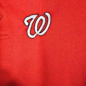 Show off your team spirit with this Washington Nationals embroidered logo polo shirt. This large, red, short sleeve shirt is perfect for any fan. Comfortable and stylish, it's a great addition to your sports apparel collection.