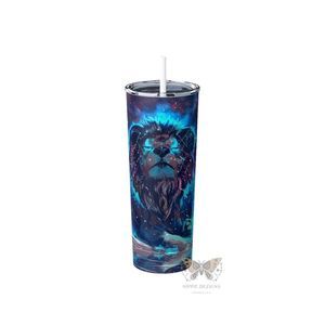 Majestic Lion 20oz Steel Tumbler With Lid & Straw