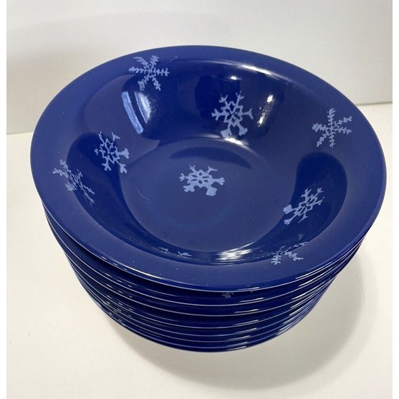 Majesticware By Oneida Bowls Blue Snowflakes ~ Set Of 8 ~ RARE!