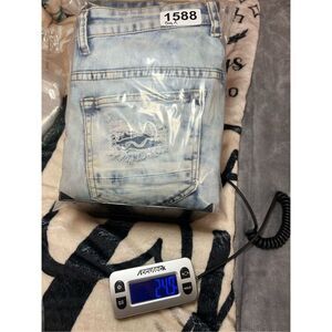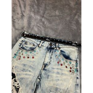 Majestik Jeans Mens Size 30/32 Light Wash Blue Slim Straight Studded Distressed