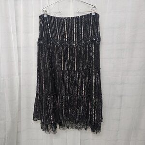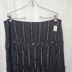 Majick Skirt Midi Black Metallic Lace Tiered Fairy Whimsigoth Sequins XL NWT
