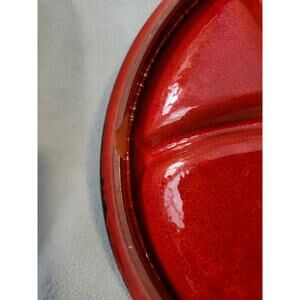 Majolica Ceramic Divided Clay Pottery Plate Red Green Floral MCM Bold