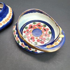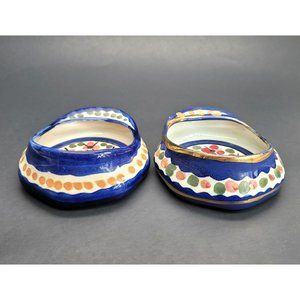 Majolica Holland Hand Painted Hat Cap Dishes Blue Floral Cr153