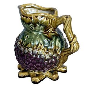 Majolica Reproduction Grapevine Pitcher 8"x8" Vase 1996 Italian Artisans Artsy