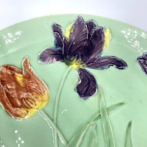 Majolica Tulips Platter Artist Georg Schmider Zell 723 Antique German 11"